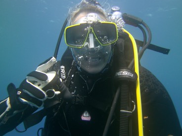 In der Ferne die Riffkante die praktisch übergangslos ins tiefe Blau über geht.