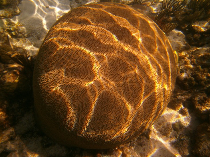 Eine Hirnkoralle im schimmernden Sonnenlicht
