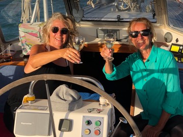 Bei einem Bierchen oder zwei und einem Glas Wein oder zwei, stossen wir mal auf der Lupina, mal auf der SeaBorne an. Hier feiern wir gerade unser 1. Treffen nach der überstandenen Quarantäne von Pia und Köbi.