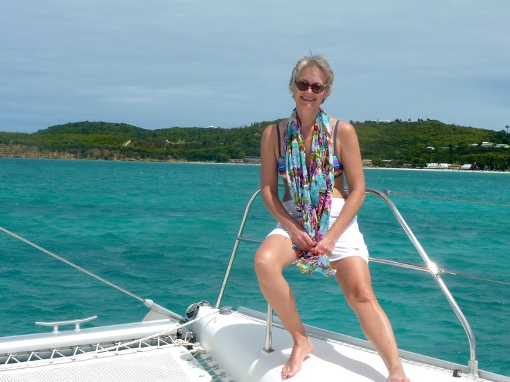 Rosita fühlt sich auf der SeaBorne wie Zuhause und geniesst das türkis blaue Wasser und die angenehme Fahrt unter Segel von Antigua nach Monserrat.