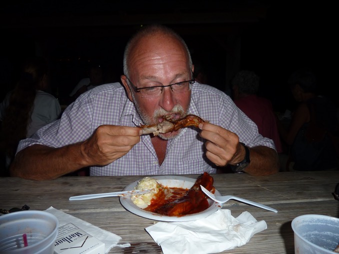 Nebst grandioser Aussicht auf English Harbour, karibisch, rhytmische Steelband-Klänge, ein saftiges Rib vom Grill für Tomi. Dann ist die Welt hier oben ganz schön in Ordnung!