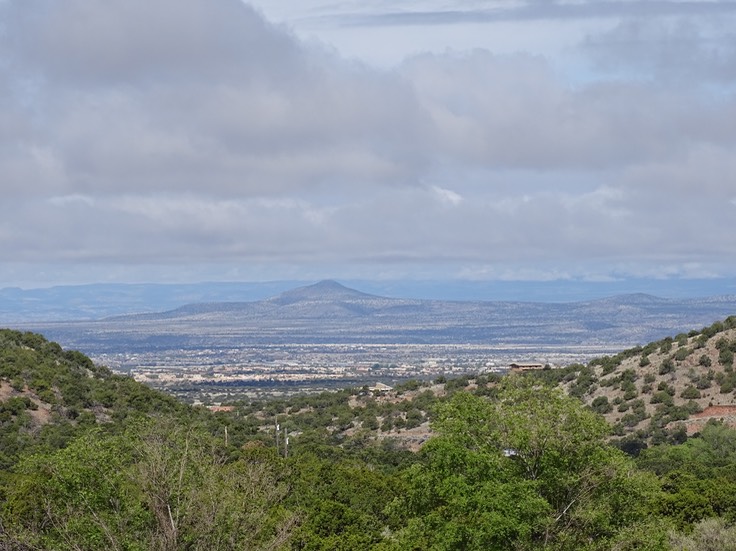 In der Ferne liegt Santa Fe. Mit vollständigem Name: La Villa Real de la Santa Fé de San Franzisco de Asis, spanisch für Königliche Stadt des heiligen Glaubens des heiligen Franz von Assisi. Cool nicht?….