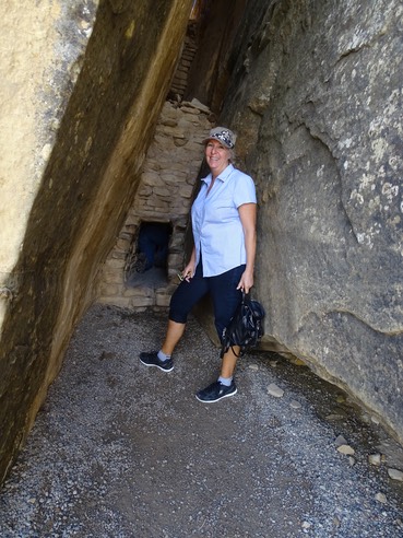 Durch diese Öffnung quetschen wir uns auf die andere Seite, dort führen die Behausungen in andere Räume weiter.