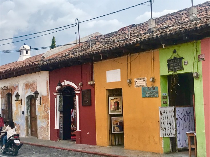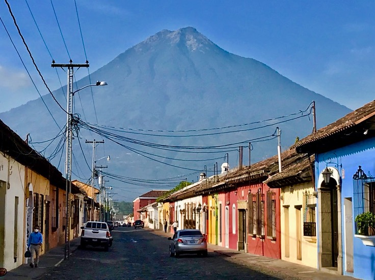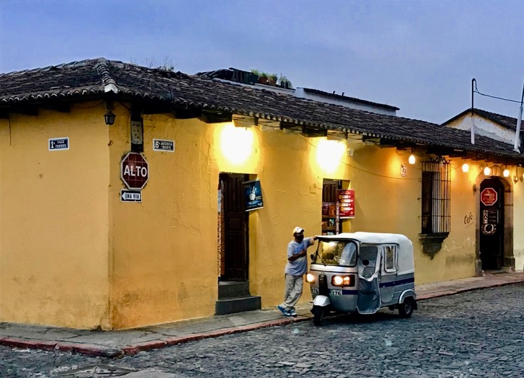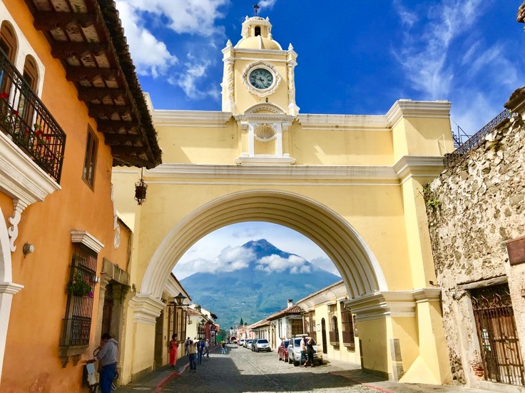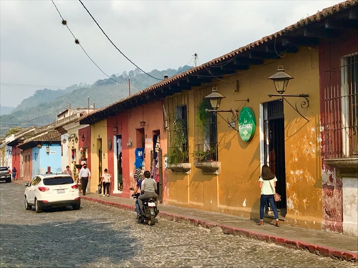 Das schmucke Städtchen Antigua verzaubert mich vom ersten Augenblick unserer Ankunft. Der Taxifahrer holpert durch die schmalen Gassen die alle aus Pflastersteinen bestehen. Die Pflastersteine unterscheiden sich nicht nur in Grösse und Form sondern auch im Höhenunterschied massiv. Eine Fahrt mit dem Tuk Tuk ist in diesen Gassen nicht nur eine Tortur sondern auch ein Kraftakt, irgendwie auf der Rückbank sitzen zu bleiben.