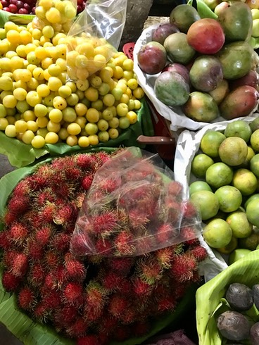 Die Marktfrauen sind sehr freundlich und offen, die Atmosphäre ist angenehm. Sie rufen ihre Waren in der immer gleichen monotonen Marktschreier-Art hinaus. Ich liebe dieses Marktleben und sehe vergnügt dem Treiben das überall statt findet zu. Zugegeben, ich bin die einzige weisse Frau auf dem Einheimischen Markt und überrage mit meiner Grösse alle anwesenden, Mann oder Frau. Dabei bin ich ja auch nur 172 cm lang, meine Breite lassen wir da mal ausser Acht!