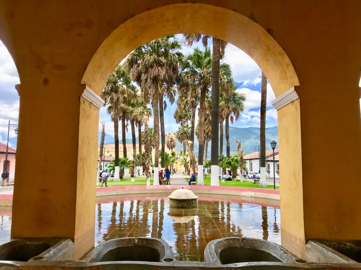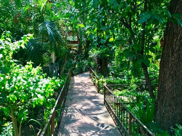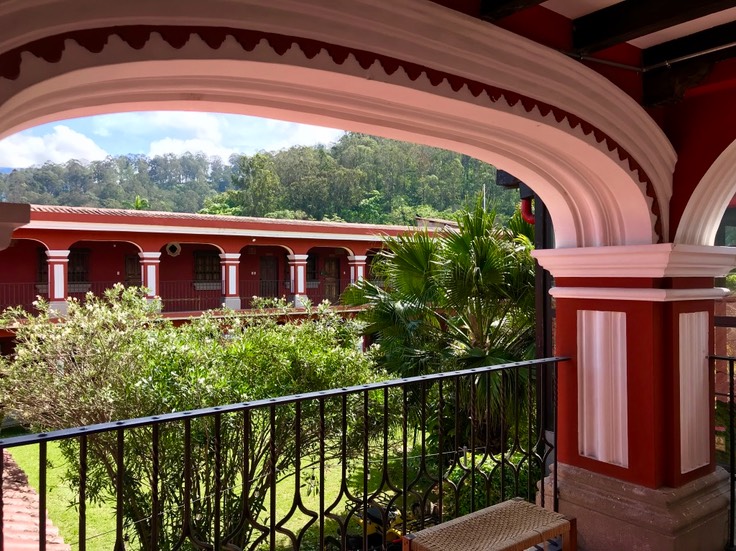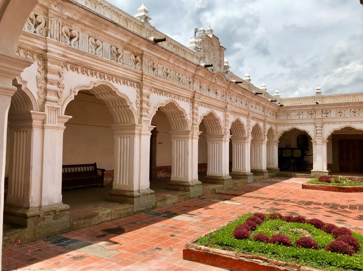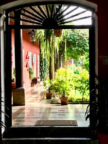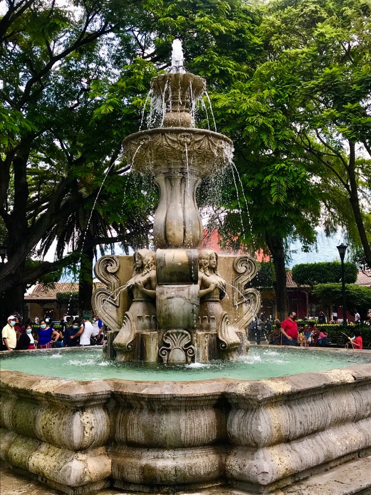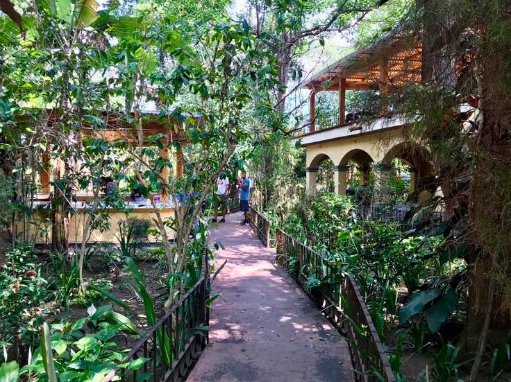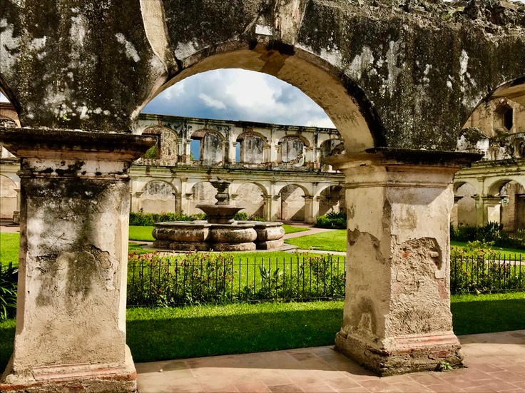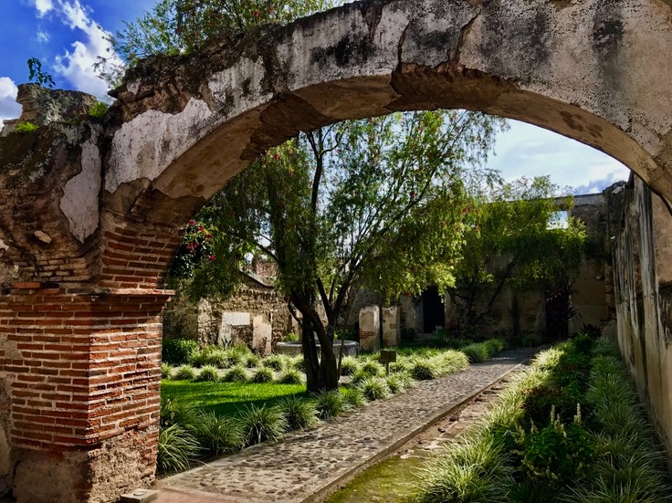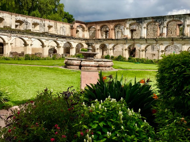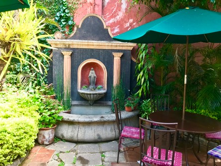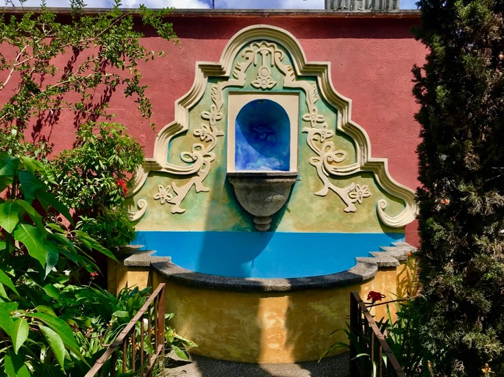 Auf meiner Entdeckungstour durch Antigua habe ich es mir zur Gewohnheit gemacht, meine „Gwundernase" in jeden einzelnen Hausgang zu stecken und hinein zu spähen. Und ich verrate euch, davon gibt es Dutzende. Was sich jeweils hinter den Gemäuer verbirgt sind Hinterhöfe. Wahre Oasen der Schönheit und Ruhe die man am liebsten nie wieder verlassen möchte hat man sie einmal betreten. Sie lassen mein Herz innerlich vor Entzücken hüpfen. Lauschige Gärten, plätschernde Brunnen, Vogelgezwitscher, farbenprächtig gestaltete Cafés und Restaurants in dichtem Grün mit Sonnenschirmen ausgestattet hinter kolonialen anmutenden Mauern in pastellenen Farben. Nur ein paar Schritte vom quirligen Stadtgetöse entfernt, gibt es eine grosse Auswahl an Köstlichkeiten seien es Kuchen, Kaffees aber auch herzhafte Speisen und erfrischende Getränken laden zum Verweilen ein. Für jedes Schlemmermaul gibt es etwas zu naschen.