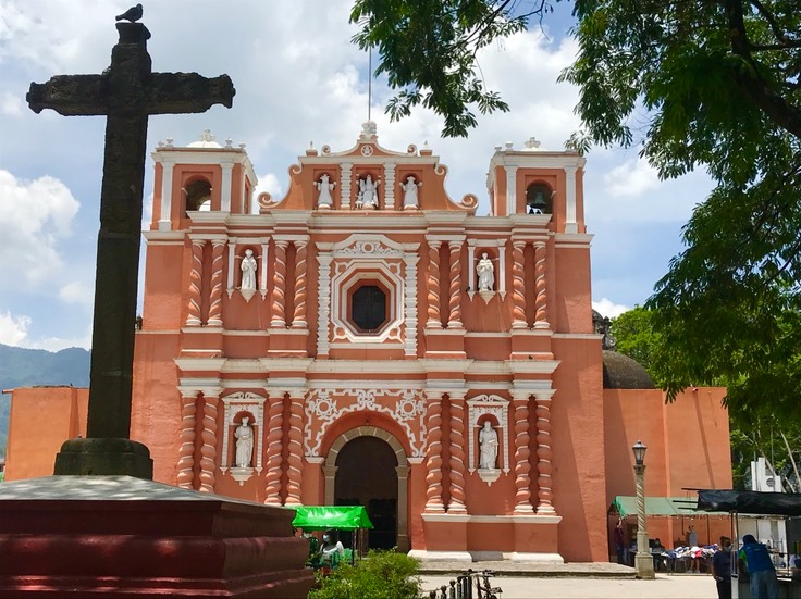 Im südlichen aussen Bezirk Antiguas liegt die Stadt Jocotenango. Wir treffen beim Bummeln durch die Gassen auf die historische rote Kirche San Pedro de las Huertas.
