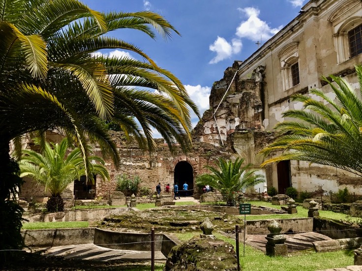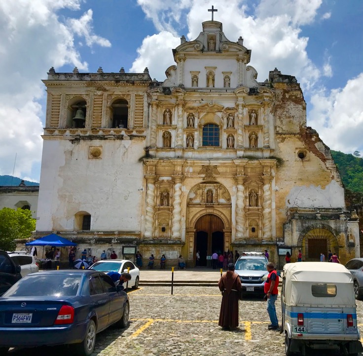 Die im Kern aus Ziegelsteinen errichtete und anschliessend verputzte bez. stuckierte Kirche der Franziskaner wurde bereits kurz nach deren Bau durch die Schlammlawine von el Agua zerstört. 1935 wurde die Ruine als Drehort für den Film Tarzan, Herr der Wildnis genutzt. Erst nach umfangreichen Reparaturarbeiten, der kompletten Rekonstruktion der Gewölbe aus Stahlbeton und der Rückkehr einiger Brüder in den 1960er Jahren wurde der Bau wieder für Gottesdienste freigegeben.