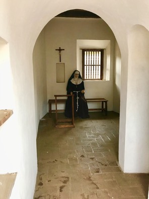 Nachstellung einer Nonnenzelle für das Gebet. Im Kellergewölbe finden heute noch Gesänge statt. Die Akustik ist einzigartig schön, es hört sich an wie mehrere Echos die übereinander liegen,wunderbar.