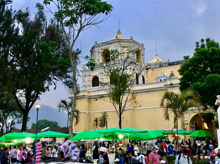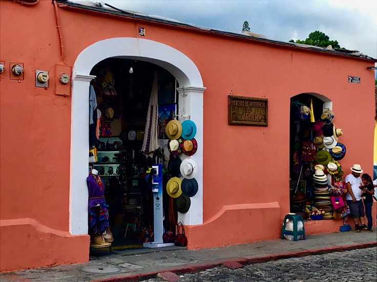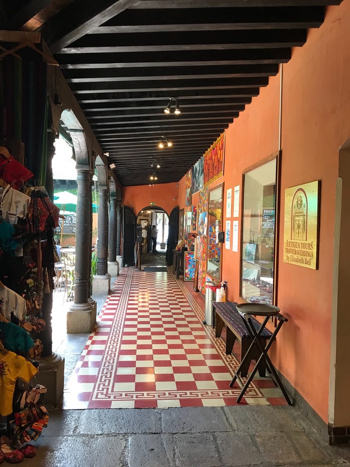 Farbenprächtige Indio-Märkte für Kunsthandwerk wie in Chichicastenango oder Sololá, sucht man in Antigua vergeblich. Dennoch gibt es in Antigua ein kunterbuntes Treiben wohin man blickt. Eine bunte Auswahl von Wandteppichen und Tischdecken, Taschen und Modeschmuck Handarbeiten und vieles mehr, die von dreihundert Mayas, die sich zu einer Art Genossenschaft - der Asociación Gremial Guatemalteca de Artesanias - zusammengeschlossen haben, produziert und hierher geliefert worden. Am Markt in Antigua findet man eine Art Artisania-Dorf mit zwei Dutzend Tiendas wo sämtliche Kunsthandwerke von den Maya-Frauen zum Verkauf angeboten werden.