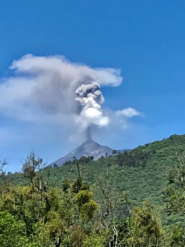 Es brodelt und lebt im Vulkan Fuego! Während meiner Zeit in Antigua hat er ein kleines Erdbeben produziert und liess die Wände erzittern. Immer mal wieder knallt und kracht es bedrohlich aus dem Krater heraus. Aschewolken stösst er fast täglich aus. Es ist ein seltsames Gefühl in der Nähe dieses unberechenbaren Vulkans zu wohnen.