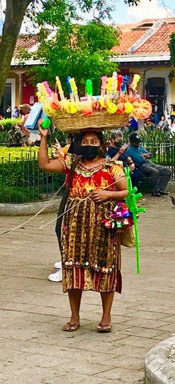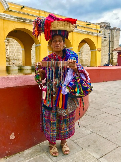 Maya-Frauen, die Straßenhandel betreiben, sind in Antigua weniger gern gesehen. Dennoch gibt es sie: Sobald irgendwo Touristen in Sicht sind, dauert es nicht lange, bis einige bunt gekleidete Frauen vorbei kommen und ihre Waren anpreisen.