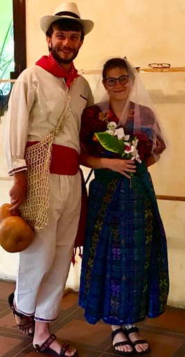 Nochmals zwei Schüler mit der traditionellen Hochzeitstracht der Guatemalteken.