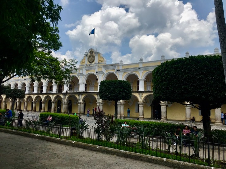 Antigua steht unter strengem Heimatschutz. Es dürfen nur bestimmte Farben für Häuser verwendet werden. Diese sind Blau, Rosa, Gelb, Beige, Rot oder Orange und Ocker. Die Beschriftungen an den Häuser sind ebenfalls genormt und dürfen nicht auffallen, sie müssen dezent an der Fassade aufgemalt oder angebracht werden. Plakate, auffallende Beschriftungssäulen, Wimpel und Reklamen sind verboten und dürfen nicht am Haus angebracht oder auf die Gehsteige gestellt werden. Die Häuser sind alle gleich Hoch, auch das ist eine Norm die eingehalten werden muss. Das gibt dann dieses einheitliche Stadtbild wo man sich als Neuling schlecht orientieren kann. Dafür behält die wunderschöne koloniale Stadt seine Ursprünglichkeit was sie so anziehend und einzigartig macht.